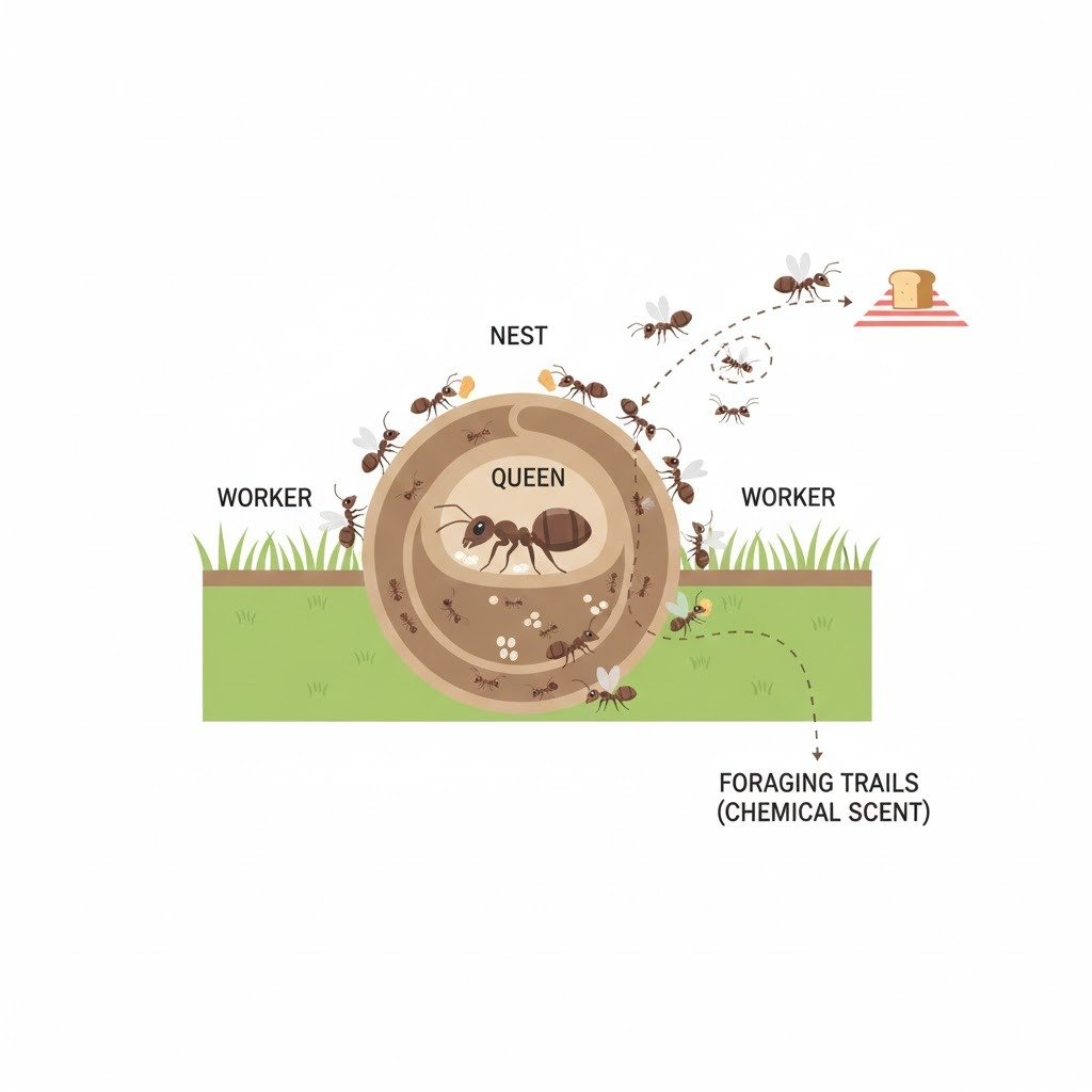 • Foraging Trails: Ants follow chemical scent trails to food sources. Disrupting these trails reduces activity.