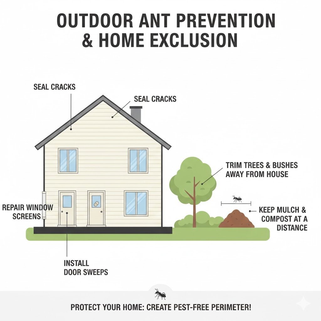 Many ant species originate outdoors, so controlling their access to your home is essential: